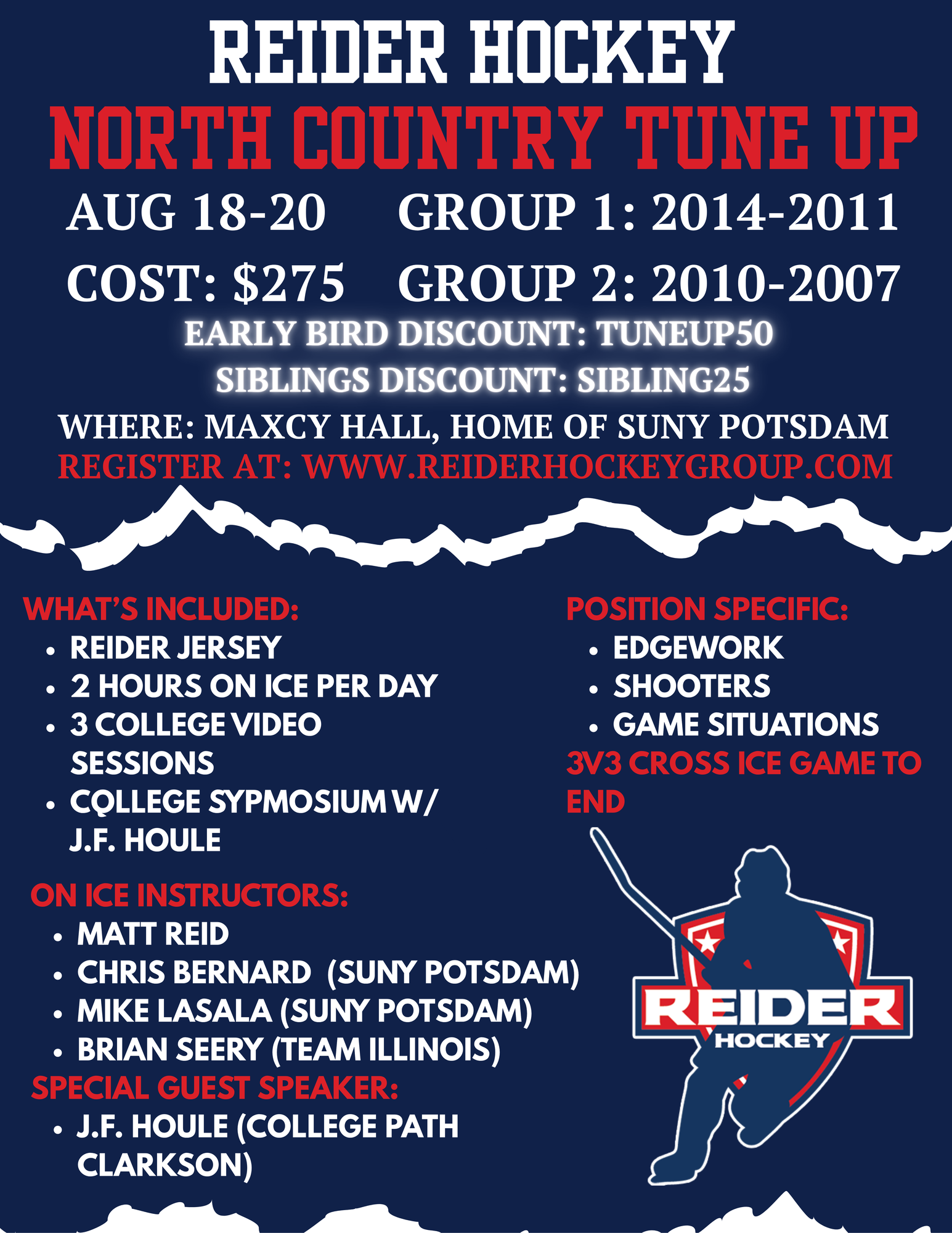 (Only one discount can be applied at the time of registration. Siblings will receive 25% off the clinic price when registered together, regardless of age group.)